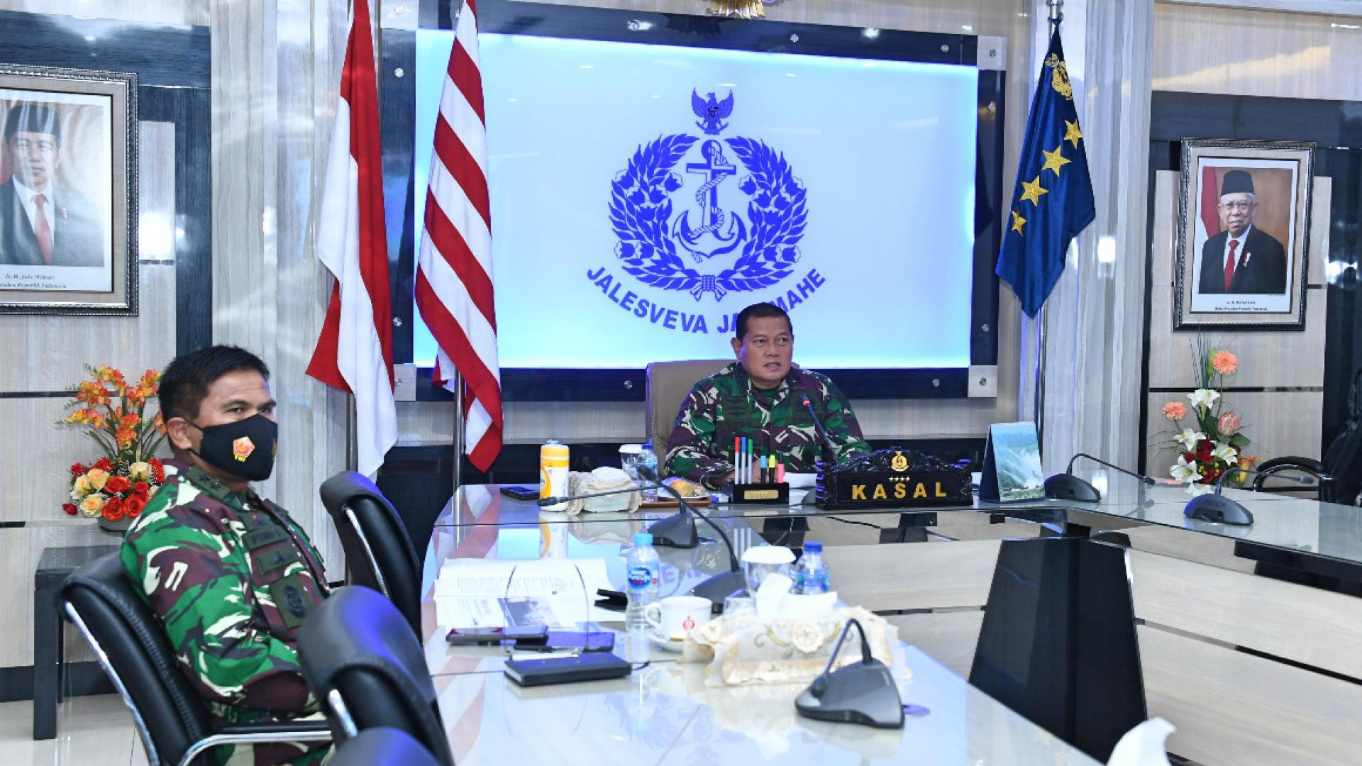 Kepala Staf Angkatan Laut (Kasal) Laksamana TNI Yudo Margono, S.E., M.M., melalui Video Conference (Vidcon) memberikan pembekalan kepada para Perwira Siswa Pendidikan Reguler (Dikreg) Sekolah Staf dan Komando TNI AU (Seskoau) Angkatan ke-57 Tahun 2020 dengan tema "Pembinaan Kekuatan dan Pembangunan TNI Angkatan Laut", bertempat di ruang Kasal, Gedung Utama Mabesal, Cilangkap, Jakarta Timur, Selasa lalu (13/10). Kegiatan tersebut dihadiri oleh Komandan Seskoau Marsekal Muda TNI Samsul Rizal, S.IP., M.Tr.(Han).