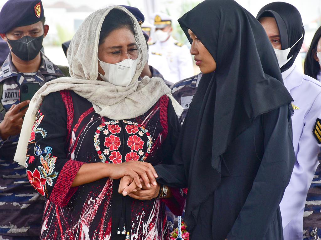 Pada kesempatan tersebut, sebagai tanda penghormatan Kasal meletakkan karangan bunga di pusara kedua pilot terbaik TNI AL itu dan menyerahkan bendera merah putih kepada pihak keluarga sembari menyampaikan rasa belasungkawanya.