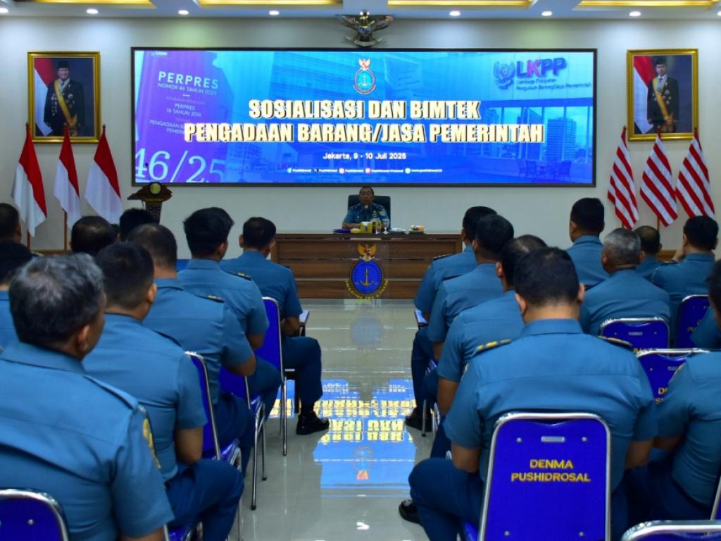Pusat Hidro-Oseanografi TNI Angkatan Laut (Pushidrosal) menggelar Sosialisasi dan Bimbingan Teknis (Bimtek) Pengadaan Barang dan Jasa Pemerintah dari tim pembekalan Disadal bertempat di gedung serbaguna Pushidrosal, Rabu (9/7/2025).