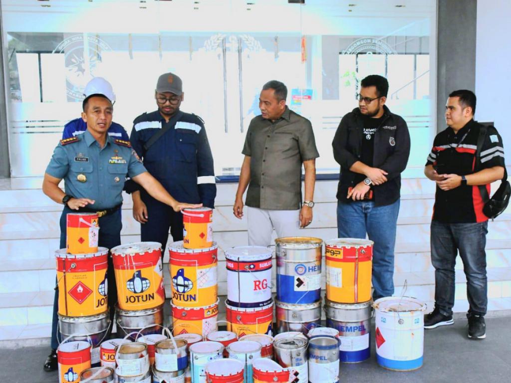 Kesigapan TNI AL dalam menjaga perairan Nusantara dari tindak kejahatan laut dan aktivitas ilegal kembali terbukti, kali ini Tim Pengamanan Alur Perairan Belawan atau Patkamla Tapak Kuda Satrol Pangkalan Utama TNI AL (Lantamal) I Belawan berhasil mengamankan puluhan kaleng cat kapal yang dicuri dari kapal MT. Phoenix Crown yang tengah lego jangkar di sekitar Buoy 4 Perairan Belawan, Medan, Sumatera Utara, Rabu (9/7/2025).