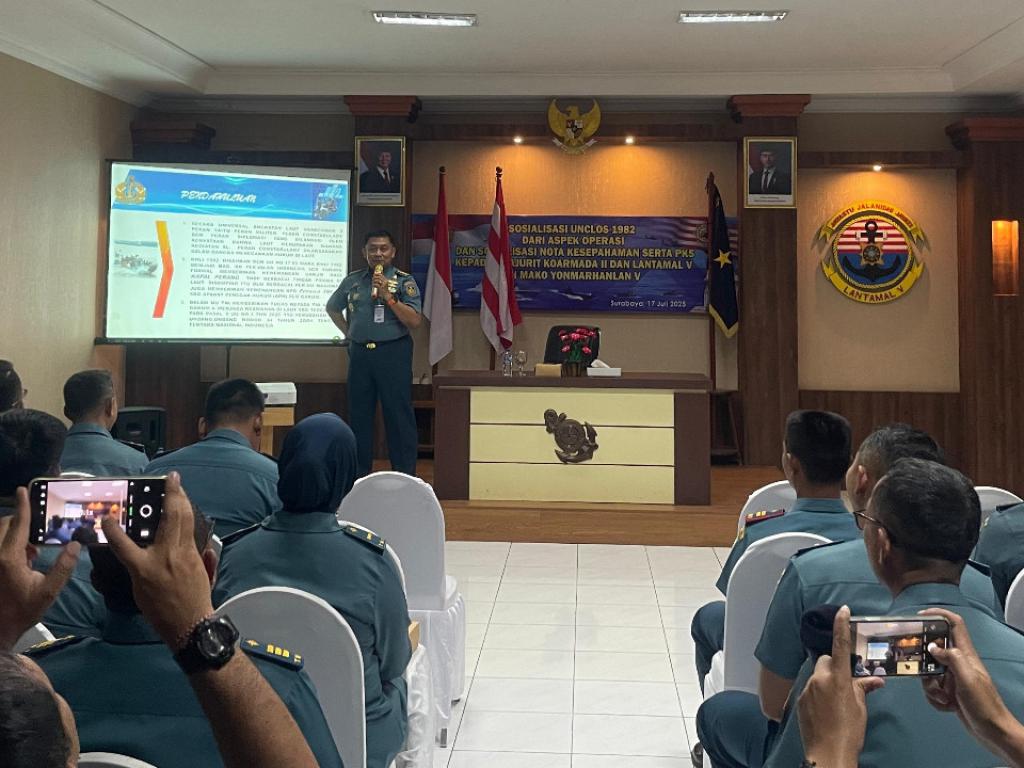 TNI AL GELAR SOSIALISASI UNCLOS 1982 BAGI PERSONEL KOARMADA II DAN LANTAMAL V SURABAYA