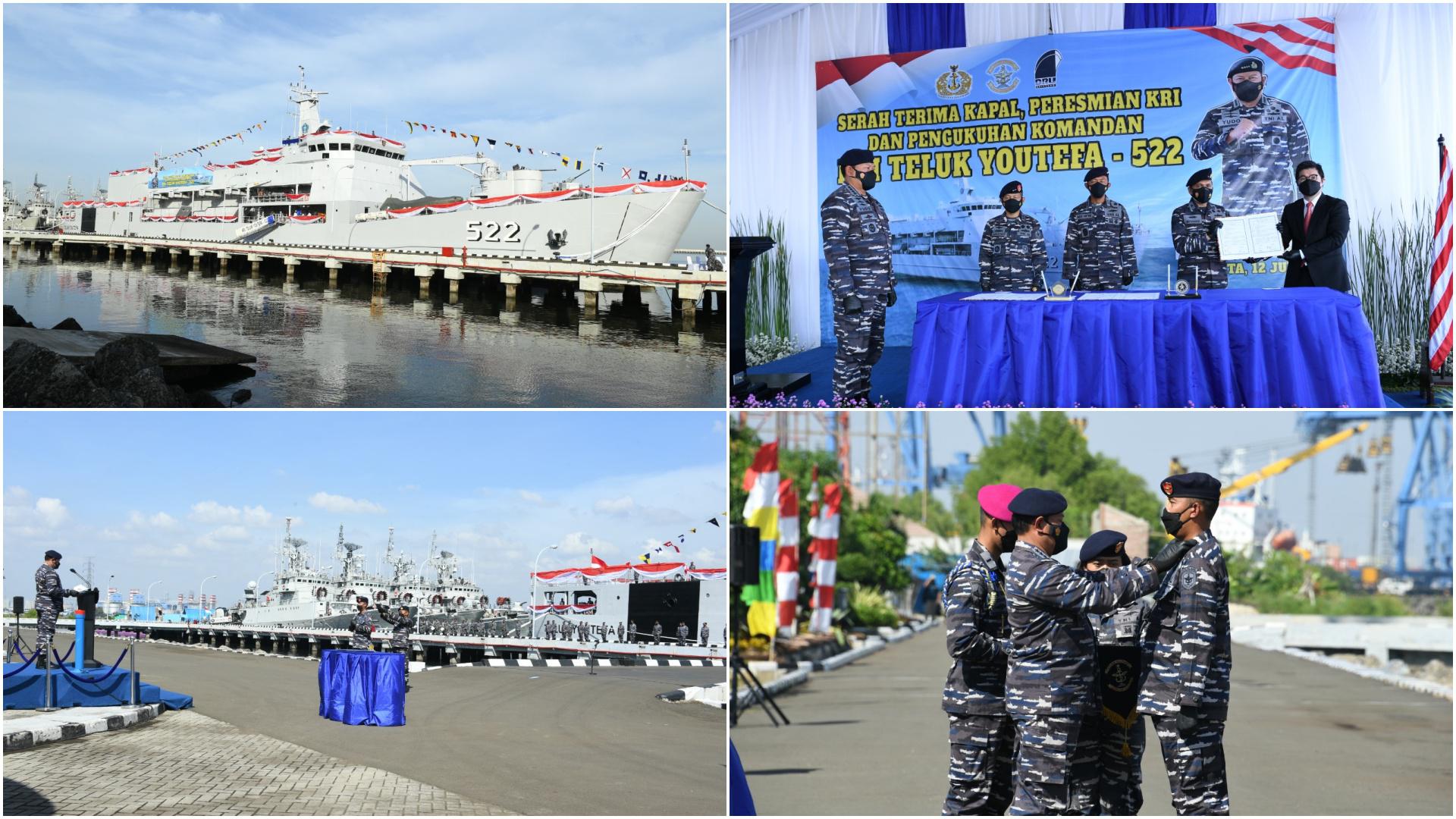Peresmian diawali dengan penandatangan berita serahterima Kapal dari Direktur Daya Radar Utama Agus Gunawan kepada Kepala Dinas Pengadaan Angkatan Laut (Kadisadal) Laksma TNI Maman Rohman, S.T., M.Han., selanjutnya diserahkan kepada Aslog Kasal Laksda TNI Puguh Santoso, S.E, M.M. dari Aslog Kasal diserahkan kepada Pangkolinlamil Laksda TNI Arsyad Abdullah, S.E., M.A.P., selaku satuan yang akan mengoperasikan kapal KRI Youtefa-522.