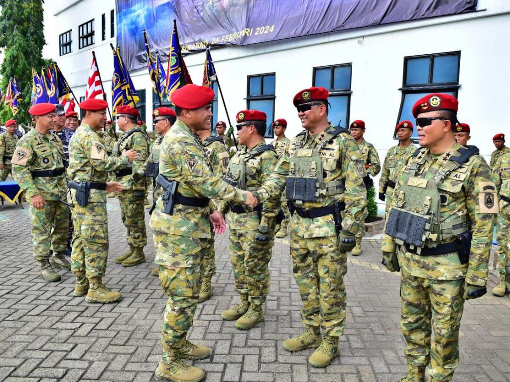 Kepala Staf TNI Angkatan Laut (Kasal) Laksamana TNI Dr. Muhammad Ali memimpin penyematan Brevet Kehormatan Komando Pasukan Katak (Kopaska), kepada delapan orang Perwira Tinggi TNI AL, bertempat di Pusat Komando Pasukan Katak (Puskopaska), Surabaya, Minggu (25/02).