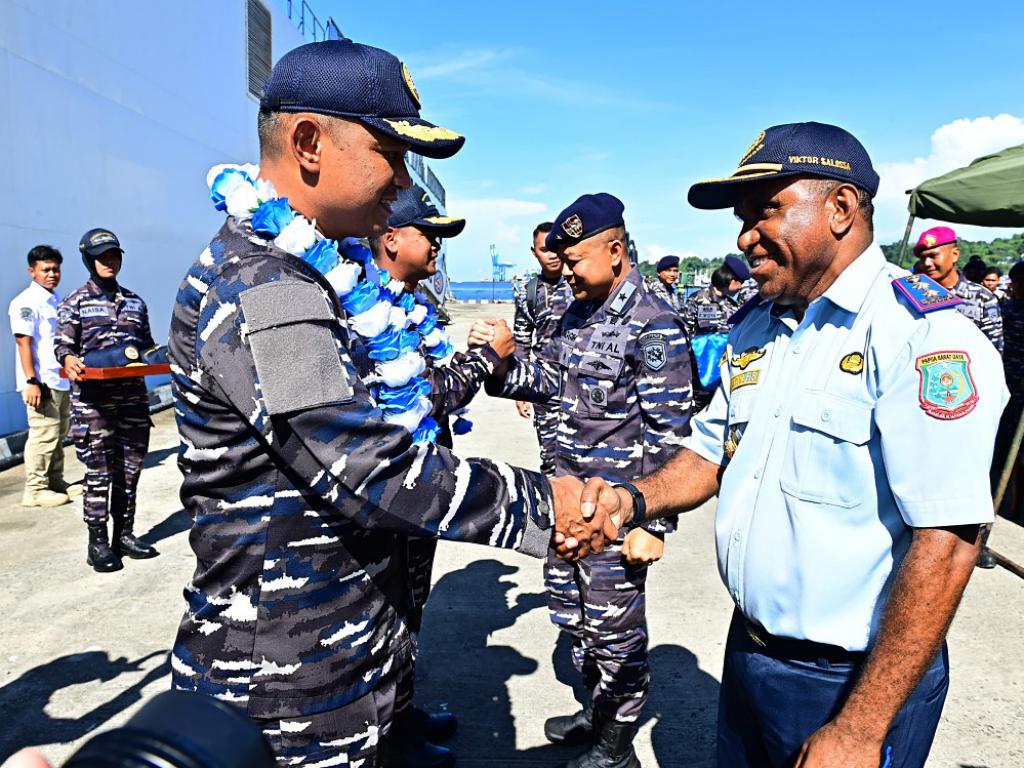 Di bawah pimpinan Komandan Satgas (Dansatgas) Kolonel Laut (P) Arif Prasetyo dan Komandan KRI WSH-991 Kolonel Laut (P) Edi Herdiana, KRI WSH-991 yang membawa misi kemanusiaan sebagai Duta Bangsa ke negara kawasan Pasifik Selatan disambut oleh Kepala Staf Koarmada III Laksma TNI Singgih Sugiarto didampingi Kadis Perhubungan Papua Barat Daya Bapak Victor F. Salosa.