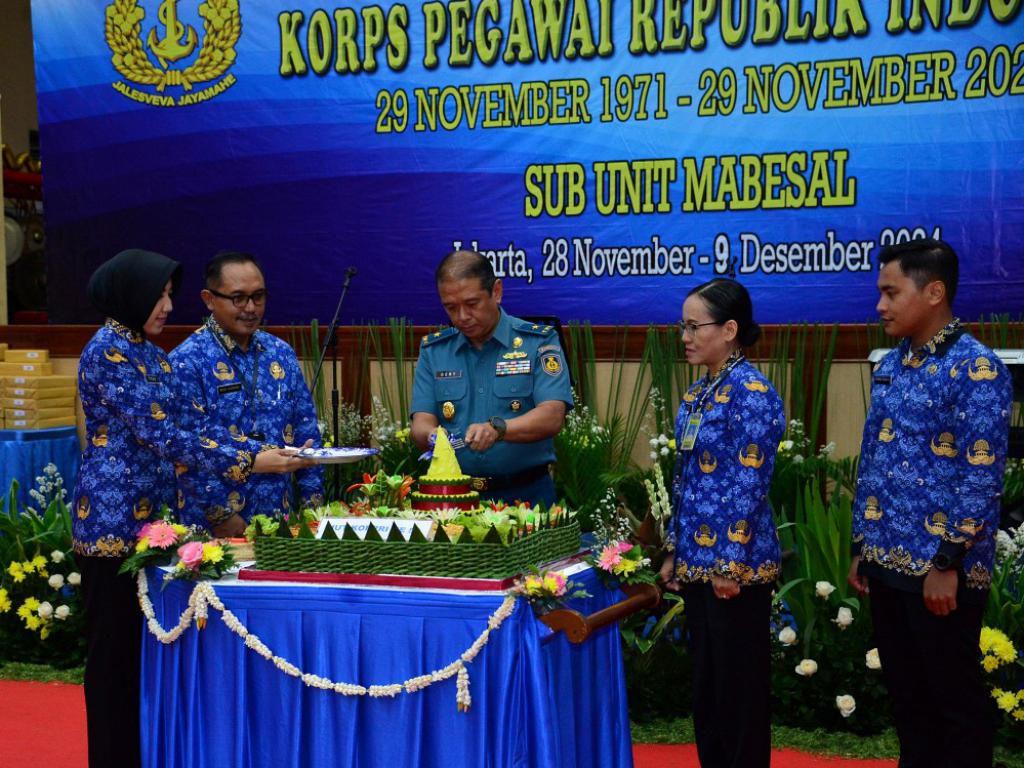 Acara yang juga dihadiri oleh Kepala Dinas Komunikasi dan Elektronika Angkatan Laut (Kadiskomlekal) Laksma TNI Benny Febri, M.M., M.Tr.Opsla., Komandan Denma Mabesal Kolonel Laut (P) Siswo Widodo, para pejabat Denma Mabesal, Ketua Dewan Pengurus Korpri Unit TNI AL Pembina Tk. I IV/b Sutrisno, Sos., M.Si., Ketua Korpri Sub Unit Mabesal, Pembina Tk. I IV/b Drs. Widhi Nugroho, serta segenap anggota Sub Unit Korpri Mabesal, ini ditandai dengan pemotongan tumpeng.