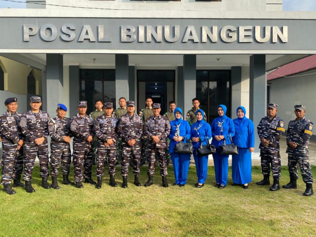 Komandan Pangkalan TNI AL Banten, Kolonel Laut (P) Catur Yogiantoro didampingi Ketua Cabang 7 Korcab III DJA I Ny. Karindia C. Yogiantoro beserta Perwira Staf melaksanakan kunjungan kerja ke Pos TNI AL (Posal) Binuangeun, salah satu pos strategis yang berada di garis pantai selatan Provinsi Banten yang langsung berbatasan dengan Samudera Hindia, Senin (30/06/2025).