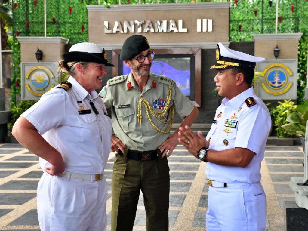 Komandan Lantamal III Jakarta Laksamana Pertama TNI Uki Prasetia, S.T., M.M. diwakili oleh Wakil Komandan (Wadan) Lantamal III Kolonel Laut (P) Ranu Samiaji, S.T., M.H., M.Tr.Opsla. menerima kunjungan kehormatan Komandan Kapal Perang Angkatan Laut New Zealand HMNZS Te Kaha (F-77) di Lobby Mako Lantamal III, Ancol, Jakarta Utara, Senin (30/6).