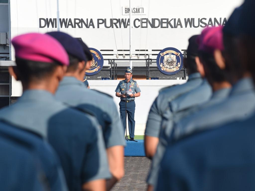 Direktur Umum (Dirum) Kodiklatal Laksma TNI Sunarto memimpin apel gabungan Antap dan Siswa Kodikopsla Kodiklatal, bertempat di Lapangan Apel Dewaruci Kodikopsla, Surabaya. Senin (7/7/2025).