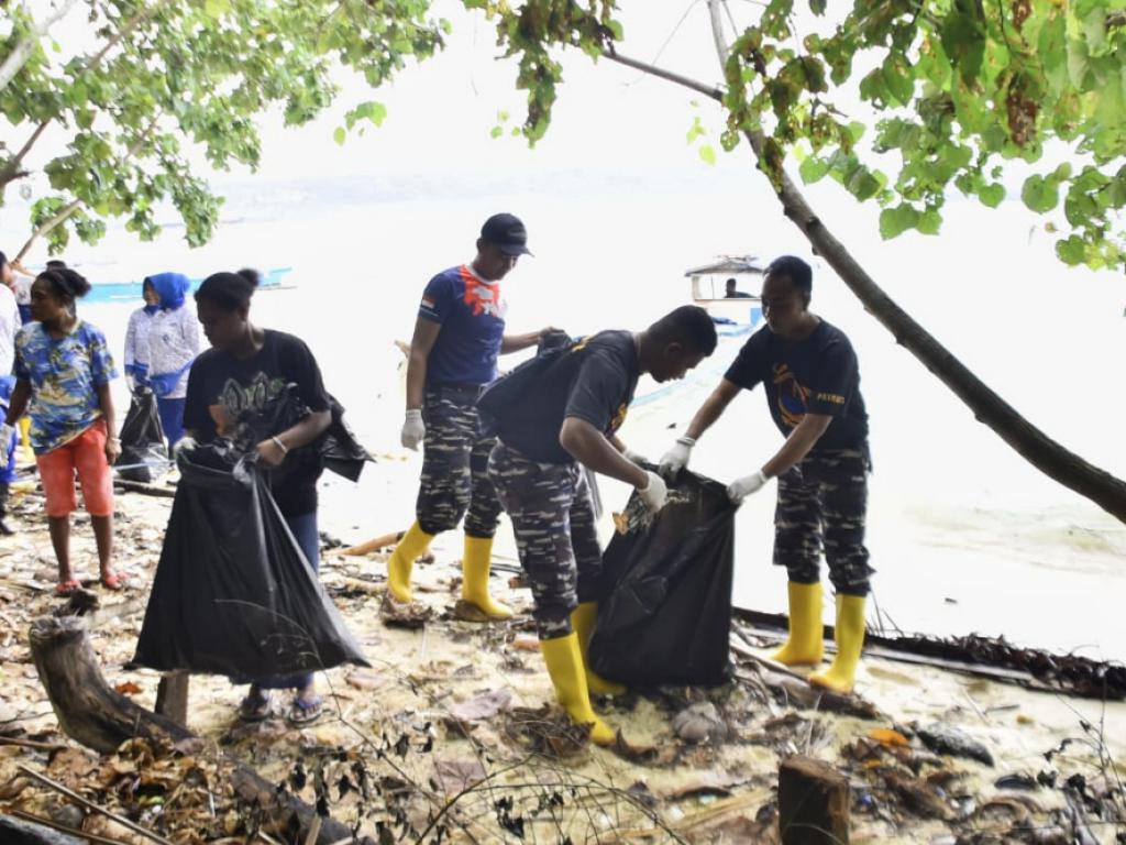 Dalam rangka menjaga kelestarian lingkungan pesisir, Satuan Tugas (Satgas) Operasi Trisila-25 TNI Angkatan Laut bersama Fasilitas Pemeliharaan dan Perbaikan (Fasharkan) Manokwari menggelar aksi bersih-bersih pantai di Pulau Lemon, Manokwari, Papua Barat, Jumat (11/7).