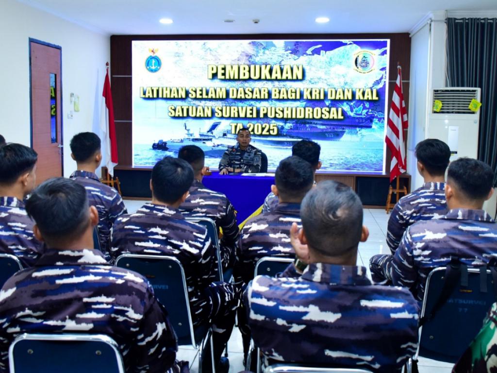 Pusat Hidro-Oseanografi TNI Angkatan Laut (Pushidrosal) menggelar pelatihan selam dasar bagi personel KRI dan KAL Satuan Survei (Satsurvei) Pushidrosal bertempat di gedung serbaguna Satsurvei Pushidrosal, Jakarta Utara, Senin (14/7/2025).