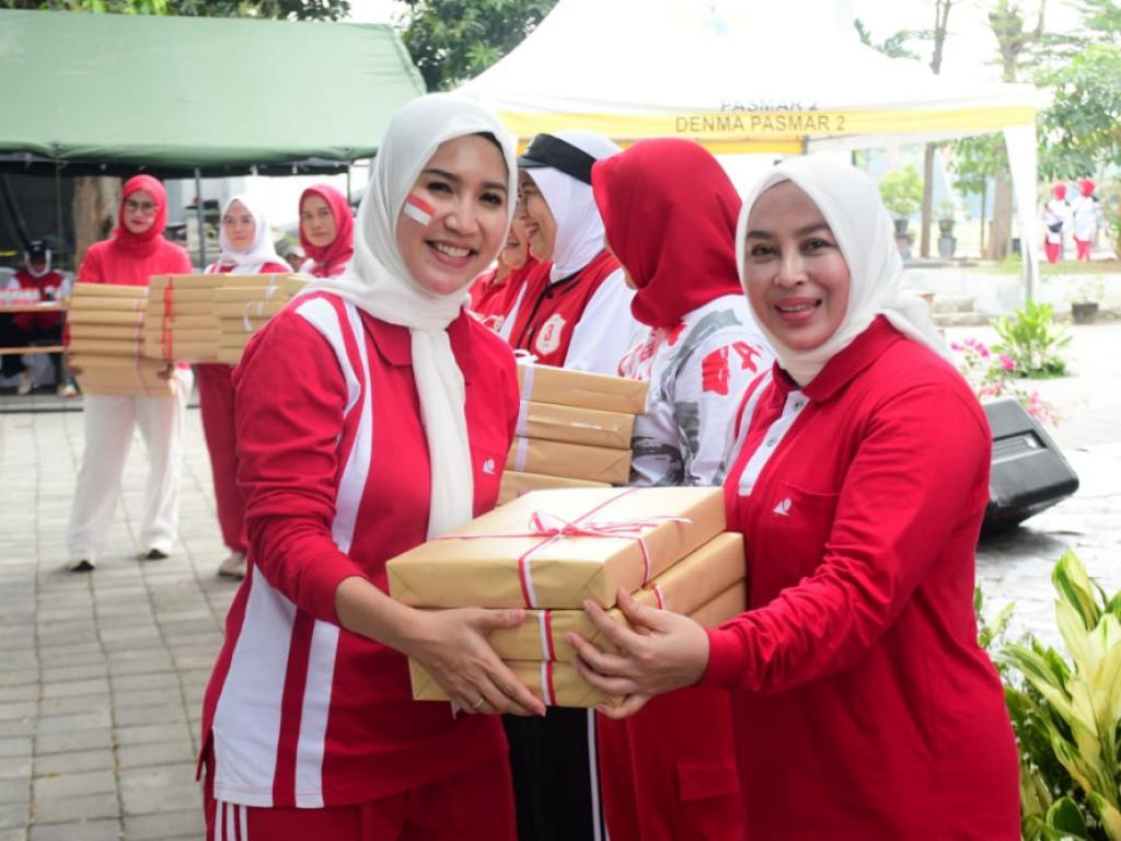 Ketua Gabungan Jalasenastri Puspenerbal, Ny. Dicca Bayu Alisyahbana bersama Pengurus PG Jalasenastri Puspenerbal mengikuti Olahraga Bersama Seluruh Ketua dan Pengurus Jalasenastri Bakor Wilayah Surabaya yang digelar di Mako Pasmar 2 Kesatrian Marinir Moekijat, Gedangan, Sidoarjo, Kamis (7/8/2025).