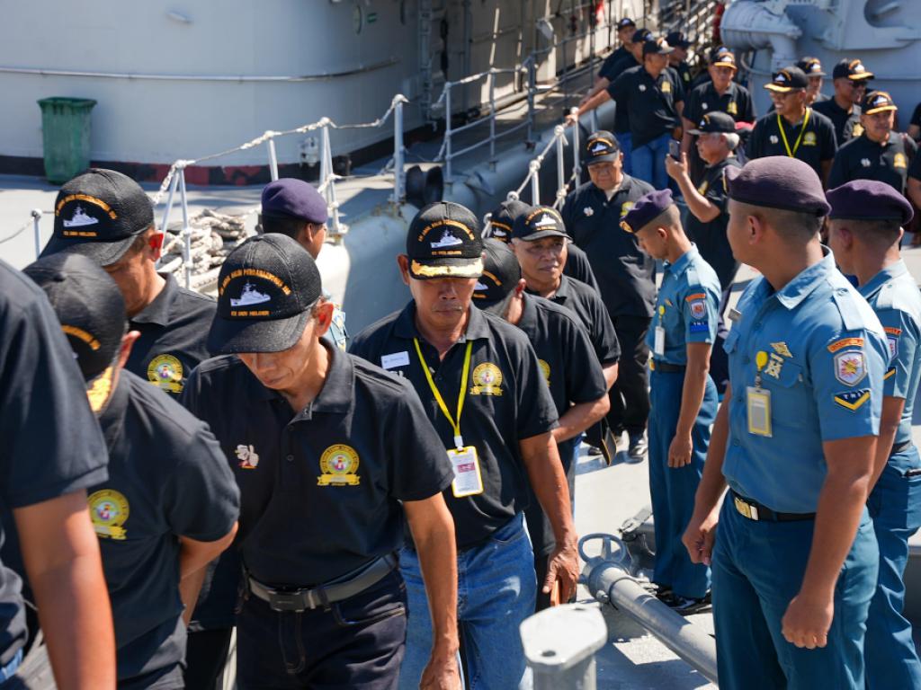 Panglima Komando Armada II (Pangkoarmada II) Laksda TNI I G P. Alit Jaya, S.H., M.Si., yang diwakilkan oleh Kepala Staf Koarmada II (Kaskoarmada II) Laksma TNI Isswarto, bersama Komandan KRI Abdul Halim Perdanakusuma-355 (KRI AHP-355) Letkol Laut (P) Aria Candrayuda M. Arifin, menerima kunjungan istimewa dari para purnawirawan TNI AL yang merupakan pengawak pertama kapal dari unsur Satuan Kapal Eskorta (Satkor) Koarmada II tersebut pada Rabu (6/8/2025).
