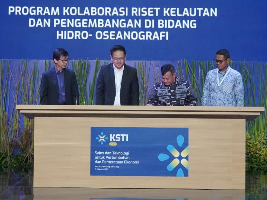 Komitmen Pusat Hidro-Oseanografi TNI Angkatan Laut (Pushidrosal) dalam mendukung penguatan riset dan pengembangan nasional kembali ditunjukkan melalui penandatanganan Perjanjian Kerja Sama (PKS) dengan Direktorat Jenderal Riset dan Pengembangan Kementerian Pendidikan Tinggi, Sains dan Teknologi (Kemendiksaintek), pada gelaran Konvensi Sains, Teknologi, dan Industri (KSTI) Indonesia 2025 yang bertempat di Sasana Budaya Ganesha (Sabuga), Institut Teknologi Bandung, Jumat (8/8/2025).