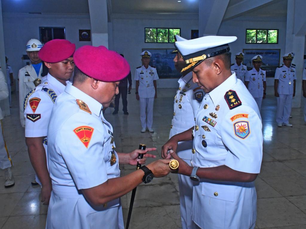 Komandan Lantamal VI (Danlantamal VI) Makassar Brigadir Jenderal (Brigjen) TNI Marinir Dr. Wahyudi, S.E., M.Tr.Hanla.,M.M., M.Han., memimpin upacara Serah Terima Jabatan (Sertijab) Empat jabatan strategis di lingkungan Lantamal VI Makassar yakni Asisten Operasi (Asops) Danlantamal VI, Asisten Logistik (Aslog) Danlantamal VI dan Kepala Fasilitas dan Perbaikan (Kafasharkan) Makassar serta Komandan Satuan Kapal Patroli (Dansatrol) Lantamal VI, yang dilaksanakan di Gedung Sultan Hasanuddin Mako Lantamal VI, Selasa (12/08/2025).