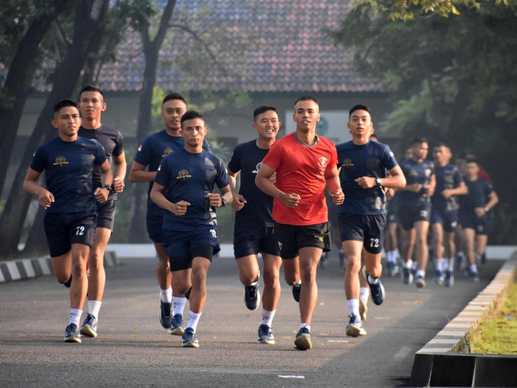 JAGA FISIK DAN STAMINA KOMANDAN BRIGIF 2 MARINIR BERSAMA TARUNA AAL KORPS MARINIR LAKSANAKAN OLAHRAGA BERSAMA