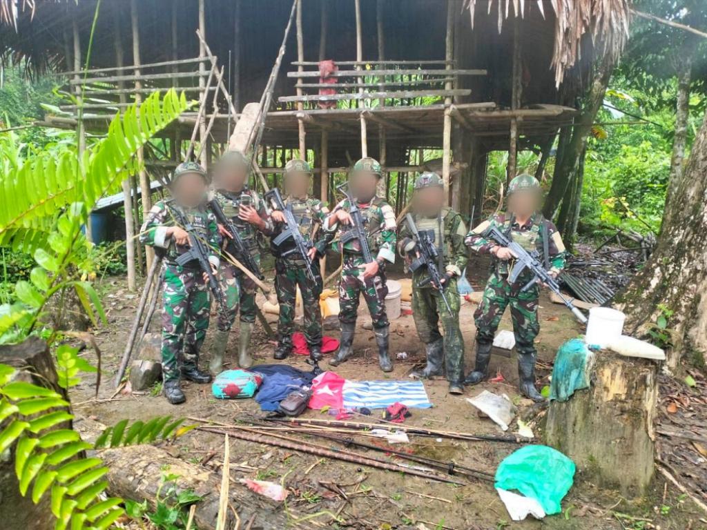 Prajurit Marinir TNI Angkatan Laut yang melaksanakan Satgas Pamtas RI-PNG Mobile yaitu Yonif 10 Marinir/SBY Gobang IV berhasil menguasai lima titik Rumah Kaki Seribu, yang selama ini dijadikan salah satu Basis OPM yaitu di Wilayah Aifat Selatan. Kabupaten Maybrat, Papua Barat Daya, Senin (1/9/2025).