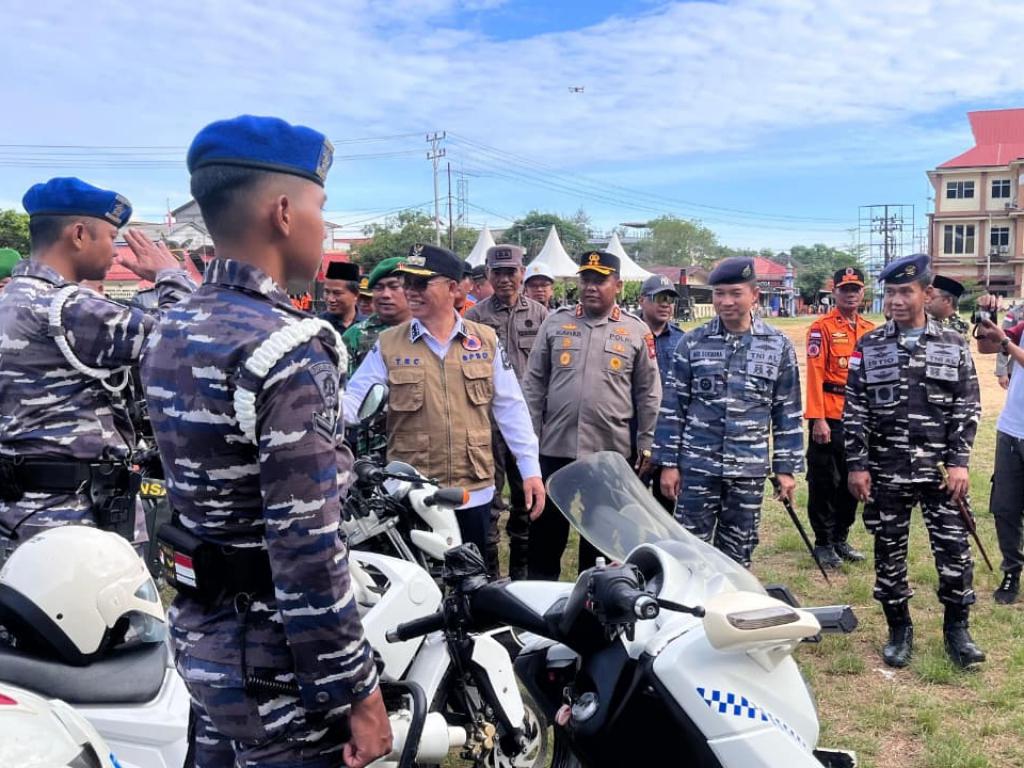 Komandan Lanudal Matak Mayor Laut (T) Istio Sugiono mengikuti Apel Siaga Penanggulangan Bencana menghadapi cuaca ekstream, konvoi kendaraan dan simulasi penanganan Laka Laut Tahun 2025 yang digelar di Lapangan Sulaiman Abdullah Tarempa dan Perairan depan RSUD Tarempa Kec. Siantan Kab. Kepulauan Anambas, Jumat (5/9/2025].