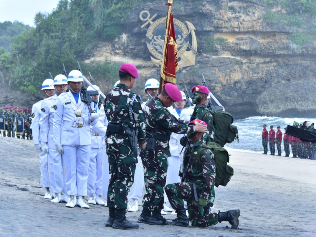 Setelah menempuh perjalanan panjang, sebanyak 529 prajurit muda TNI AL resmi dikukuhkan sebagai anggota Korps Marinir dalam prosesi Tradisi Pembaretan, yang turut dihadiri oleh Komandan Kodiklatal Letjen TNI Marinir Nur Alamsyah. Momen bersejarah pembaretan Prajurit Muda Jalasena dipimpin langsung oleh Panglima Korps Marinir (Pangkormar) Letjen TNI Marinir Dr. Endi Supardi, yang berlangsung di Pantai Baruna, Kondang Iwak, Kabupaten Malang, Jawa Timur. Selasa (16/9/2025).