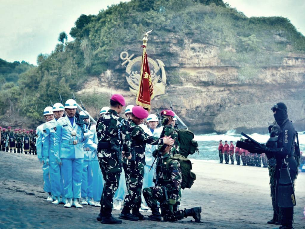 Sebanyak 529 Prajurit TNI AL secara resmi menyandang baret ungu Korps Marinir setelah dilaksanakan upacara penyematan yang dipimpin oleh Panglima Korps Marinir Letjen TNI Maret Endi Supardi di Pantai Baruna Kondang Iwak, Dusun Sumber Pucung, Desa Tulungrejo, Kecamatan Donomulyo, Kabupaten Malang Selasa (16/9/2025).