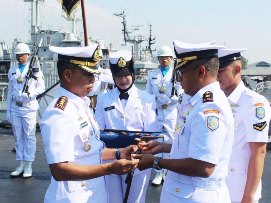 Komandan Satuan Lintas Laut Militer (Satlinlamil) 3 Kolonel Laut (P) Sulthon M. Firdaus, M.Tr.Opsla., memimpin Upacara Serah Terima Jabatan Komandan KRI Teluk Amboina-503 dari Letkol Laut (P) Rendra Hariwibowo, S.H., M.Tr.Opsla., kepada Mayor Laut (P) Dwi Bagus Roestiawan, S.H., M.Tr.Opsla., bertempat di Geladak Utama KRI Teluk Amboina-503 yang sandar di Dermaga Ende Selatan, Koarmada II Ujung Surabaya, Kamis (18/9/2025).