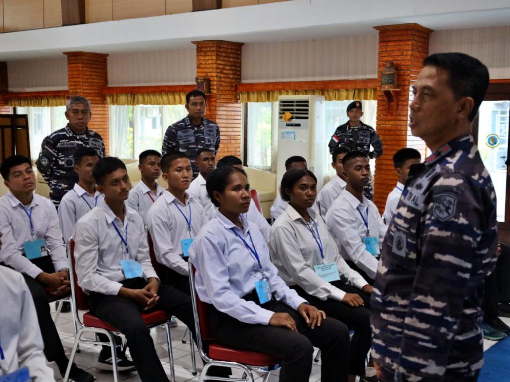 Wakil Komandan Komando Daerah TNI Angkatan Laut (Wadan Kodaeral) X, Laksamana Pertama TNI Dadang Somantri, CRMP, memberikan wejangan penuh motivasi kepada 29 calon siswa prajurit TNI AL yang akan berangkat mengikuti seleksi pantukhir pusat di malang pada 25 september mendatang.