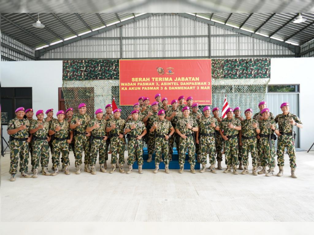 Komandan Pasmar 3 Brigjen TNI (Mar) Andi Rahmat M. memimpin langsung upacara Serah Terima Jabatan (Sertijab) empat jabatan strategis di jajaran Pasmar 3. Kegiatan tersebut berlangsung di _Shelter_ Yonkes 3 Marinir, Kesatrian Abraham Octavianus Atururi (AOA) Majener, Distrik Salawati, Kabupaten Sorong, Papua Barat Daya, Selasa (23/09/2025).