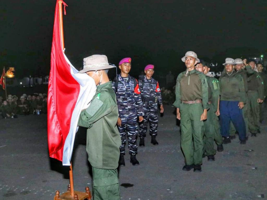 Untuk menumbuhkan jiwa patriotik, peserta prlatihan bela negara Korps Kadet Republik Indonesia (KKRI) menonton bareng film Believe dari videotron di Lapangan Apel Brigif 1 Kesatrian Marinir Hartono Cilandak, Jakarta Selatan, Sabtu (27/09/2025) malam.