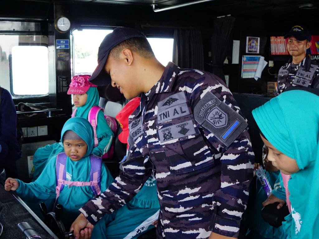 Selama kunjungan, siswa diajak berkeliling kapal, berinteraksi langsung dengan prajurit pengawak, serta mendapatkan penjelasan tentang tugas pokok TNI AL, khususnya peran Kodaeral XII dalam menjaga keamanan dan kedaulatan wilayah perairan.