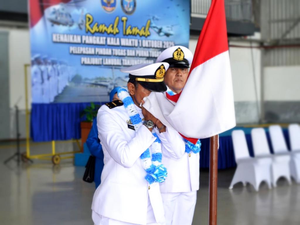 Komandan Pangkalan Udara TNI Angkatan Laut (Danlanudal) Tanjungpinang, Letkol Laut (P) Tatang Yanuar Ristanto memimpin langsung acara ramah tamah, tradisi pelepasan purna tugas dan pindah tugas prajurit Lanudal Tanjungpinang yang digelar di Hanggar Lanudal Tanjungpinang, Rabu (1/10/2025).
