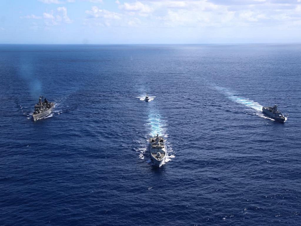 Seluruh kapal berlayar dalam formasi dan saling unjuk kemampuan di tengah kondisi Laut Mediterania yang bergelombang membentuk formasi untuk menghadapi simulasi ancaman multidomain pada peperangan laut yang kompleks.