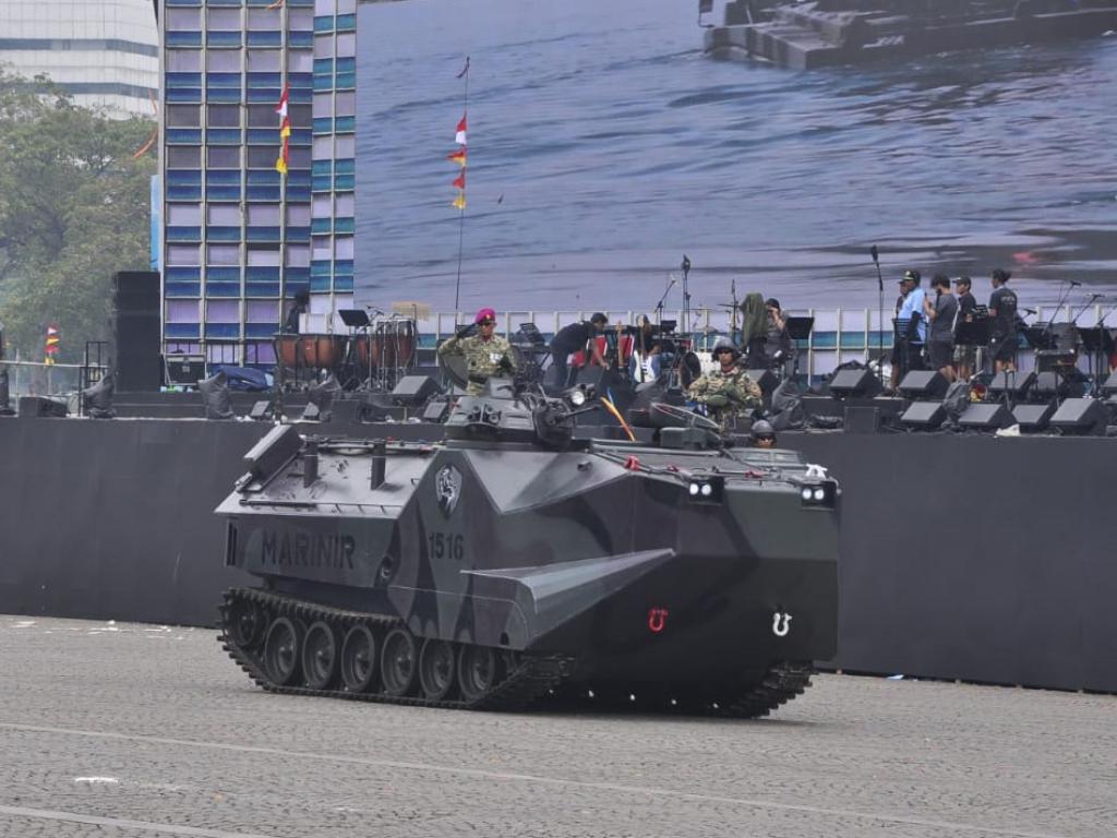 Pada kesempatan tersebut, Komandan Pasmar 3 dengan berdiri gagah di atas Tank Amfibi Korps Marinir LVT-7 atau lebih dikenal sebagai AAV-7A1 (Assault Amphibious Vehicle) memimpin langsung barisan Kendaraan Tempur (Ranpur) Korps Marinir TNI AL dalam defile pasukan dan alutsista TNI.