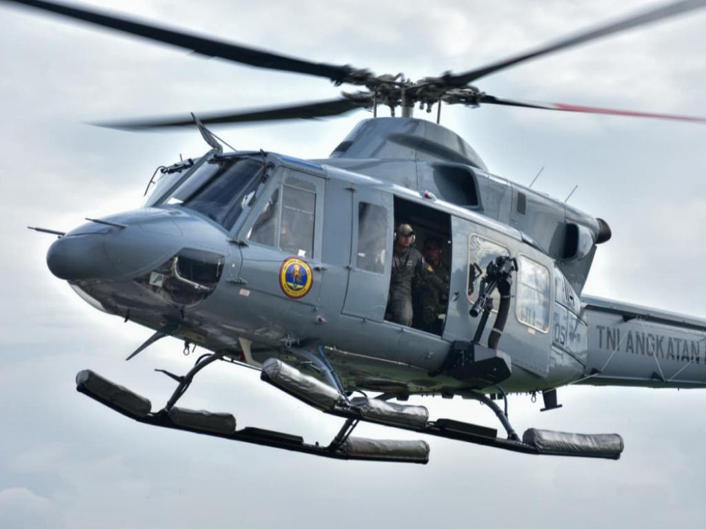 Heli Bell 412 yang dipersenjatai dengan M134 Gatling Gun menunjukkan kemampuan manuver perlindungan udara yang efektif. Dipiloti oleh Kapten Laut (P/W) Utami dan Lettu Laut (P) Adila dari Skuadron Udara 400 Wing Udara 2 Puspenenerbal.