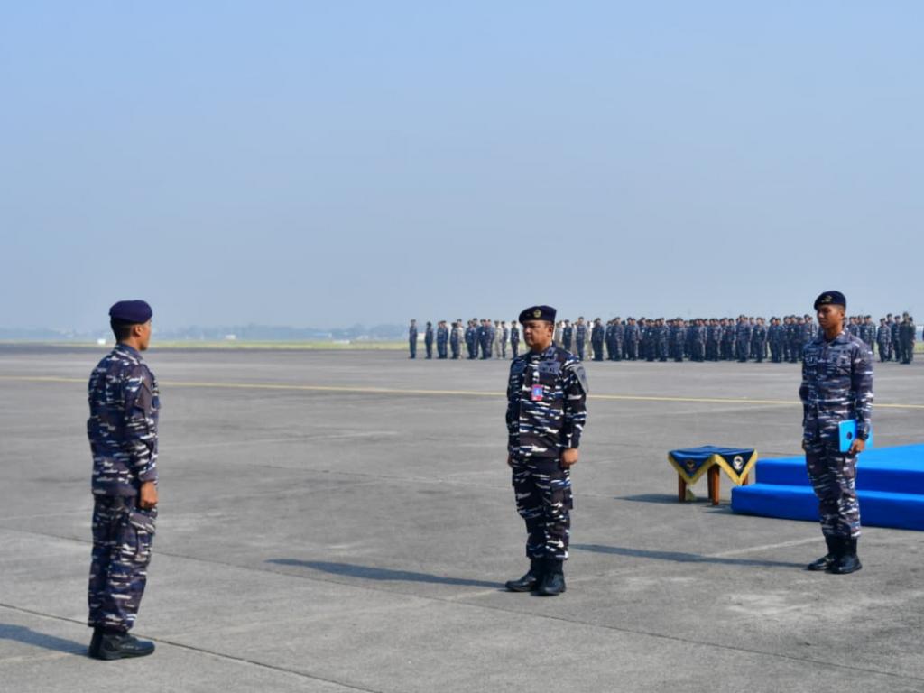 Kepala Fasilitas Pemeliharaan dan Perbaikan Pesawat Udara (Kafasharkan Pesud) Puspenerbal, Kolonel Laut (T) Djoko Nursanto, mewakili Komandan Pusat Penerbangan TNI Angkatan Laut (Puspenerbal) Laksda TNI Bayu Alisyahbana, memimpin apel khusus dalam rangka Peringatan Hari Kesehatan TNI Angkatan Laut (Harkesal) ke-77, yang digelar di Apron Hanggar Lanudal Juanda, Rabu (9/10/2025).