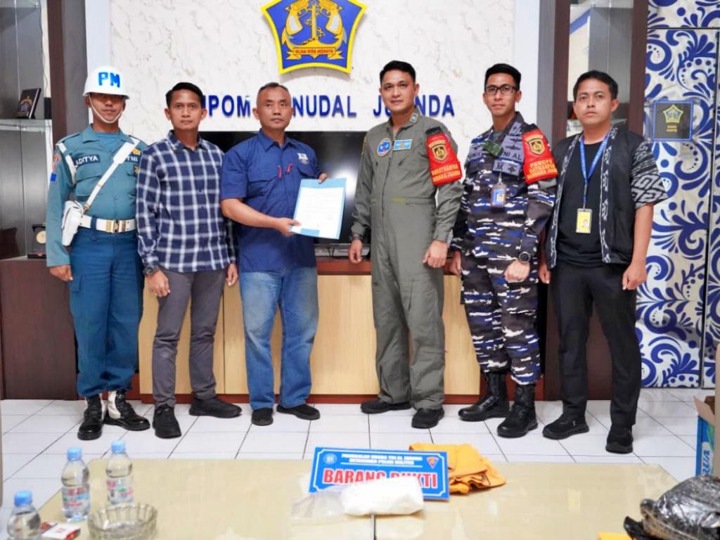 Komandan Lanudal Juanda Kolonel Laut (P) Gugus Wahyu S.U. menyampaikan apresiasi atas sinergi antara Satgaspam TNI AL, petugas kargo Bandara Juanda, PT IAS, Lion Parcel, dan Satresnarkoba Polresta Sidoarjo dalam menggagalkan peredaran narkotika melalui jalur udara.