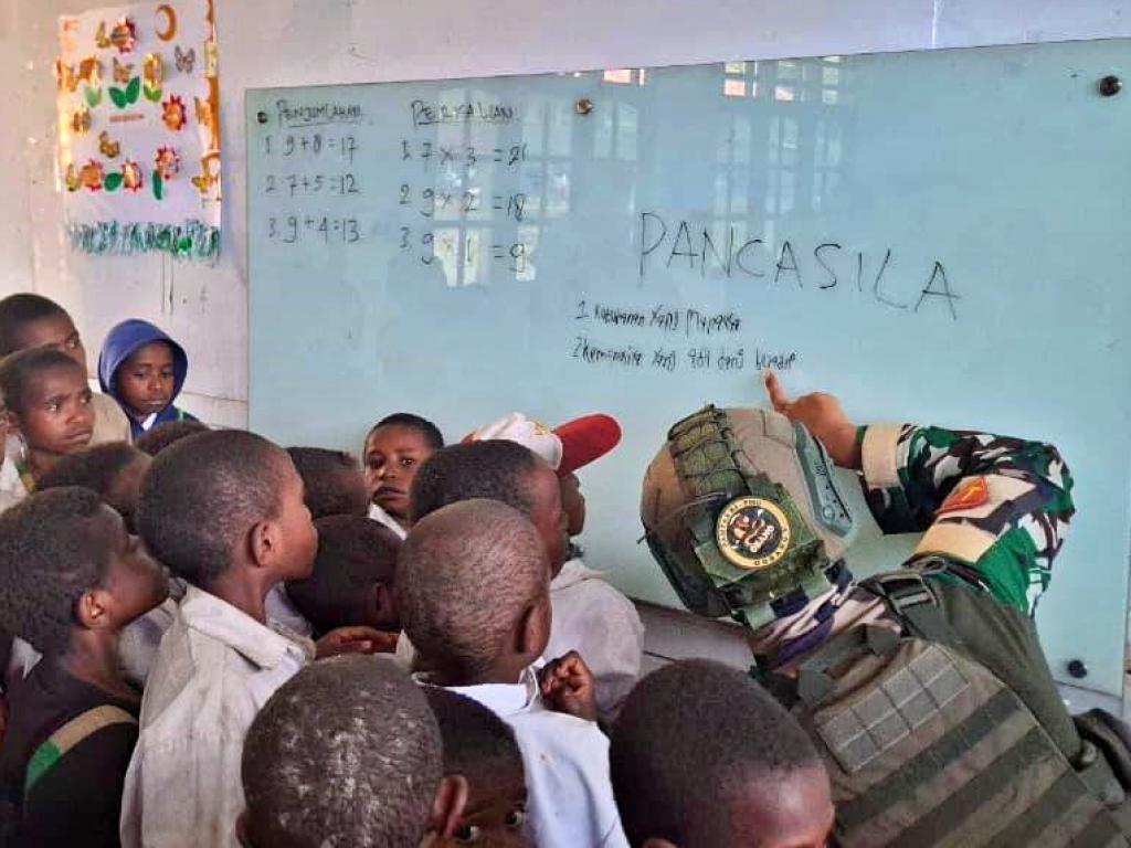 Prajurit TNI Angkatan Laut dari Satuan Tugas Pengamanan Perbatasan (Satgas) RI–PNG Mobile 2025 Batalyon Infanteri 4 Marinir (Yonif 4 Mar) kembali menunjukkan dedikasi dan kepeduliannya terhadap masa depan generasi muda Papua melalui kegiatan Bina Teritorial Wilayah (Bintahwil) dengan mengajar di Sekolah Dasar Inpres, Distrik Obano, Kabupaten Paniai Barat, Papua Tengah, pekan lalu.