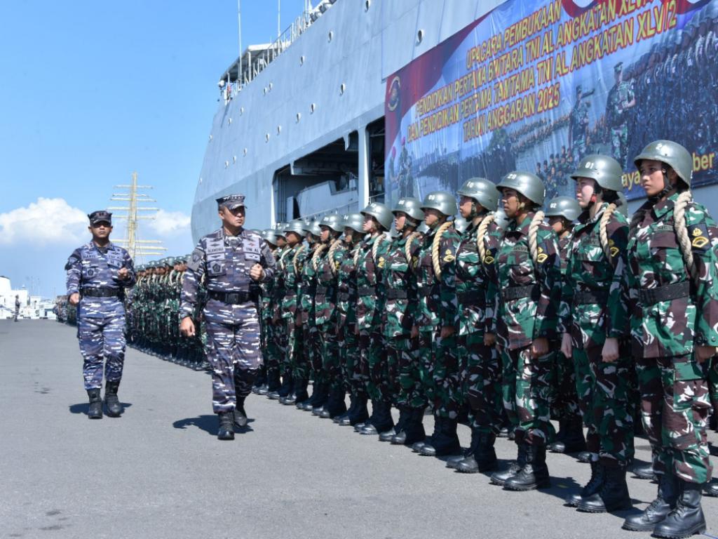 Komandan Komando Pembinaan Doktrin, Pendidikan, dan Latihan TNI Angkatan Laut (Dankodiklatal) Letjen TNI Marinir Nur Alamsyah resmi membuka Pendidikan Pertama Bintara (Dikmaba) Angkatan Ke-45 Gelombang 1 dan Pendidikan Pertama Tamtama (Dikmata) TNI AL Angkatan Ke-45 Gelombang 2 TA 2025, yang berlangsung di Dermaga Semampir Baru Koarmada II, Ujung, Surabaya, Senin (13/10/2025).