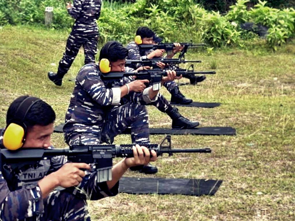 ASAH KETERAMPILAN SENJATA RINGAN, DUA UNSUR SATKAT KOARMADA I LAKSANAKAN LATIHAN MENEMBAK