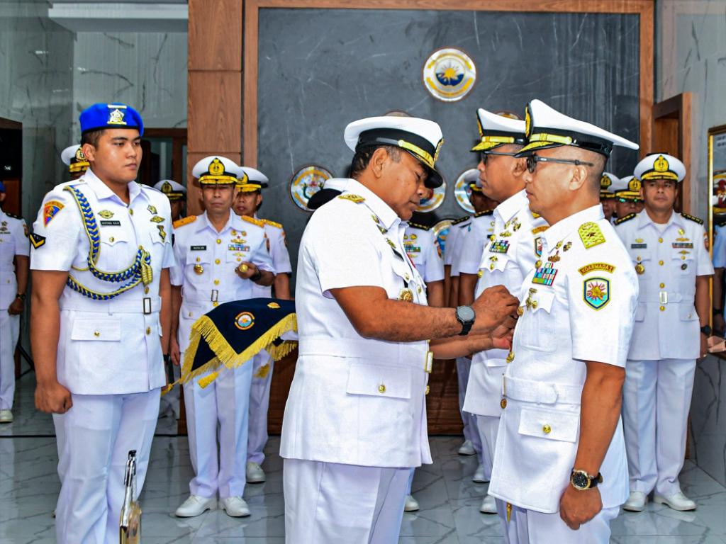 Panglima Komando Armada I (Pangkoarmada I) Laksamana Muda TNI Fauzi, S.E., M.M., M.Tr.Opsla., M.Han. memimpin upacara Serah Terima Jabatan (Sertijab) Kepala Staf Komando Armada I (Kaskoarmada I) dari Laksamana Pertama TNI Mochammad Riza, S.E., M.Tr.Opsla. kepada Laksamana Pertama TNI Arif Badrudin, M.Mgt., Stud., yang berlangsung di Lobby Markas Komando Koarmada I, Tanjungpinang, Kamis (16/10/2025).