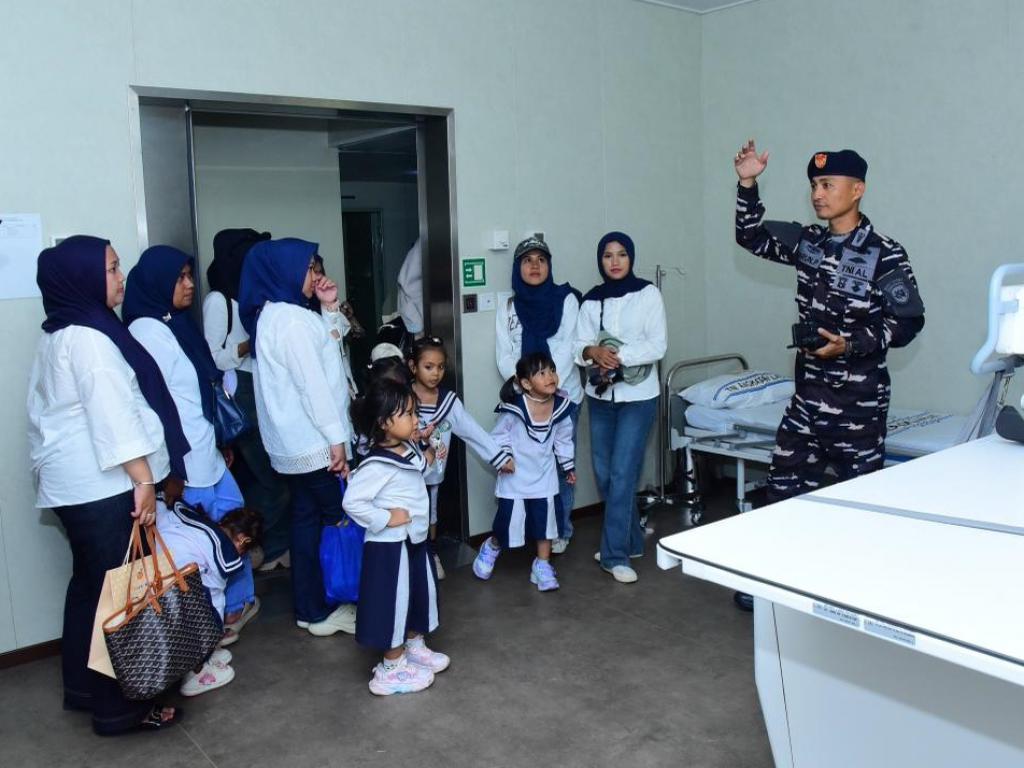 Sejak menapakkan kaki di dermaga, wajah-wajah polos anak-anak tampak antusias dan penuh semangat. Dengan bimbingan para prajurit KRI RJW-992, mereka diajak berkeliling kapal untuk mengenal berbagai fasilitas dan fungsi utama kapal rumah sakit TNI Angkatan Laut tersebut, mulai dari anjungan, ruang kemudi, hingga perlengkapan navigasi dan kesehatan yang digunakan dalam operasi kemanusiaan dan pelayaran militer.