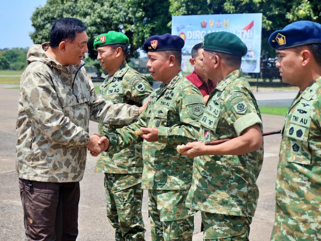 Dengan menggunakan Pakaian Dinas Lapangan TNI Corak terbaru (Sage Green) Dankodaeral VI tampak gagah turut menyambut kedatangan Menteri Pertahanan RI beserta rombongan.