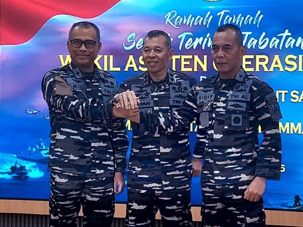 Asops Kasal Laksda TNI Yayan Sofiyan memimpin Sertijab Waasops Kasal dari Laksma TNI Sigit Santoso kepada Laksma TNI Mohamad Riza di Pelataran Denma Mabesal. Senin (20/10/2025). Acara tersebut selain dihadiri undangan Kewasgiatan Sopsal juga Prajurit dan PNS serta Ibu-ibu cabang 3 Jalasenastri Sopsal.