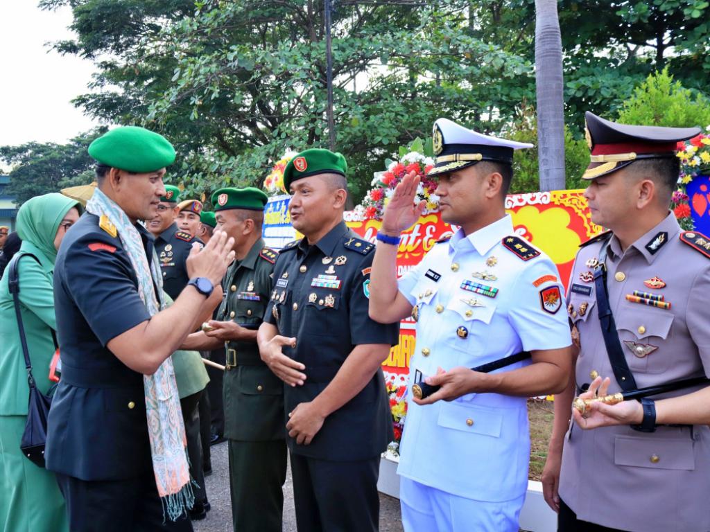 Komandan Pangkalan TNI Angkatan Laut (Danlanal) Cirebon Letkol Laut (P) Faisal Yanova Tanjung, S.E., M. Tr.Opsla., didampingi Ketua Cabang 8 Daerah Kodaeral III Gabungan Jalasenastri Koarmada RI (Ny. Widya Faisal) menghadiri upacara serah terima jabatan Komandan Batalyon Arhanud 14/Pratiti Wira Yudha (Danyon Arhanud 14/PWY) Cirebon, Selasa (21/10/2025).