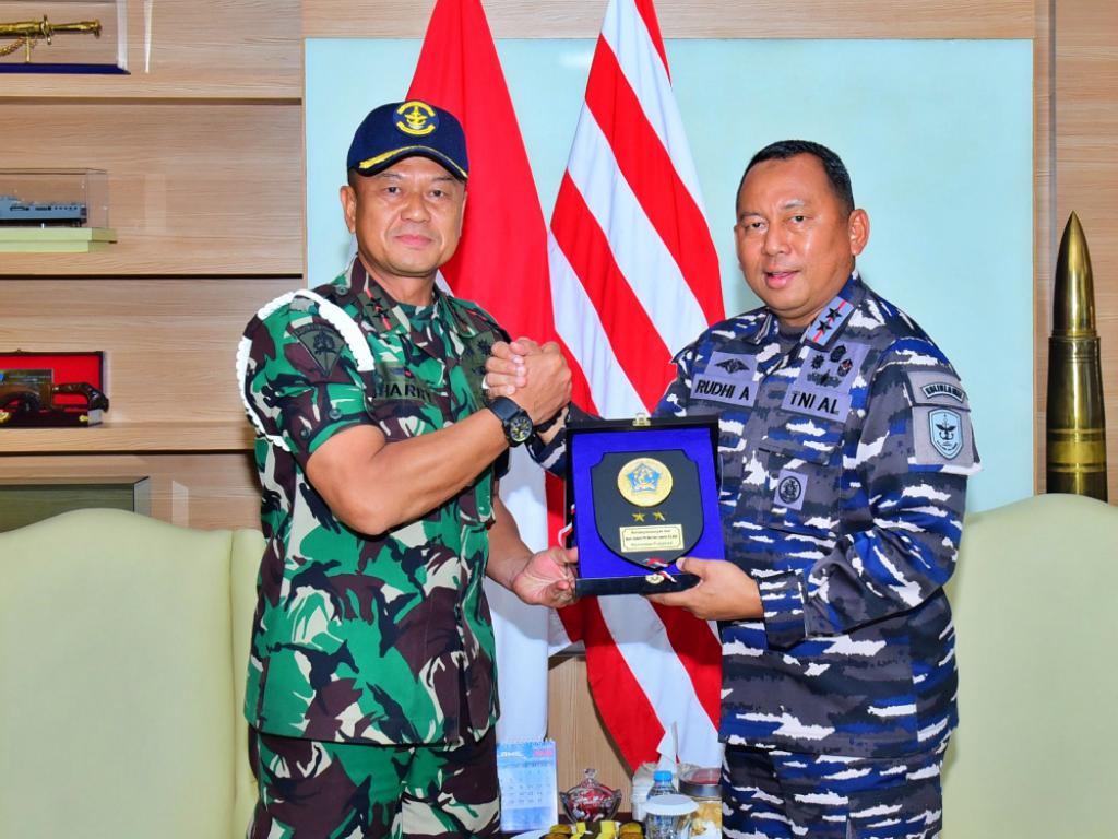 Pertemuan berlangsung hangat dan produktif, ditandai dengan pertukaran cendera mata sebagai simbol persahabatan dan sinergi antar satuan. Momen ini mencerminkan kuatnya semangat kebersamaan dalam menjaga marwah dan profesionalisme TNI AL, sejalan dengan nilai Sapta Marga dan Trisila TNI AL. |