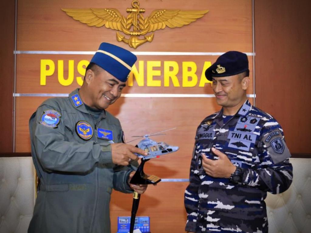 Kepala Dinas Penerangan Angkatan Laut (Kadispenal), Laksma TNl Tunggul menerima Brevet Kehormatan Penerbangan TNl AL yang disematkan langsung Komandan Pusat Penerbangan TNI AL (Danpuspenerbal), Laksda TNl Bayu Alisyahbana di Ruang VlP Gedung R. Kasenda, Mako Puspenerbal, Juanda, Sidoarjo. Kamis (6/11/2025).