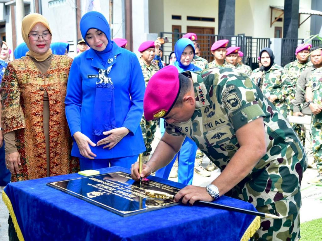 Panglima Korps Marinir (Pangkormar) Letnan Jenderal TNI (Mar) Dr. Endi Supardi, S.E., M.M., M.Tr.Opsla., CHRMP., CRMP., didampingi Ketua Gabungan Jalasenastri Korps Marinir Ny. Nana Endi Supardi meresmikan kegiatan program bedah rumah dalam rangka HUT Ke-80 Korps Marinir Tahun 2025 di Perumahan Bukit Depok, Sasak panjang kec. Tajur Halang Kab. Bogor Jawa Barat, Senin (10/11/2025).