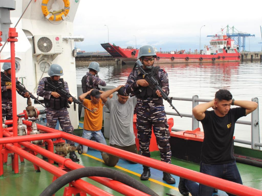 Dalam latihan kali ini diskenariokan bahwa KRI Teluk Manado-537 yang sedang berlayar mendapat laporan dari agen SPBO Wavin 01 bahwa armadanya telah dirompak oleh sekelompok orang tidak dikenal di Perairan Makassar. Menindaklanjuti laporan tersebut, Komandan KRI Teluk Manado-537 melaksanakan pencarian dan pendeteksian SPBO Wavin 01 dilokasi kejadian serta meluncurkan Tim VBSS untuk melaksanakan penindakan, menyelamatkan sandera dan melumpuhkan perompak. Berkat kesigapan dan gerak cepat Tim VBSS, sandera dapat diselamatkan dan perompak dapat dilumpuhkan.