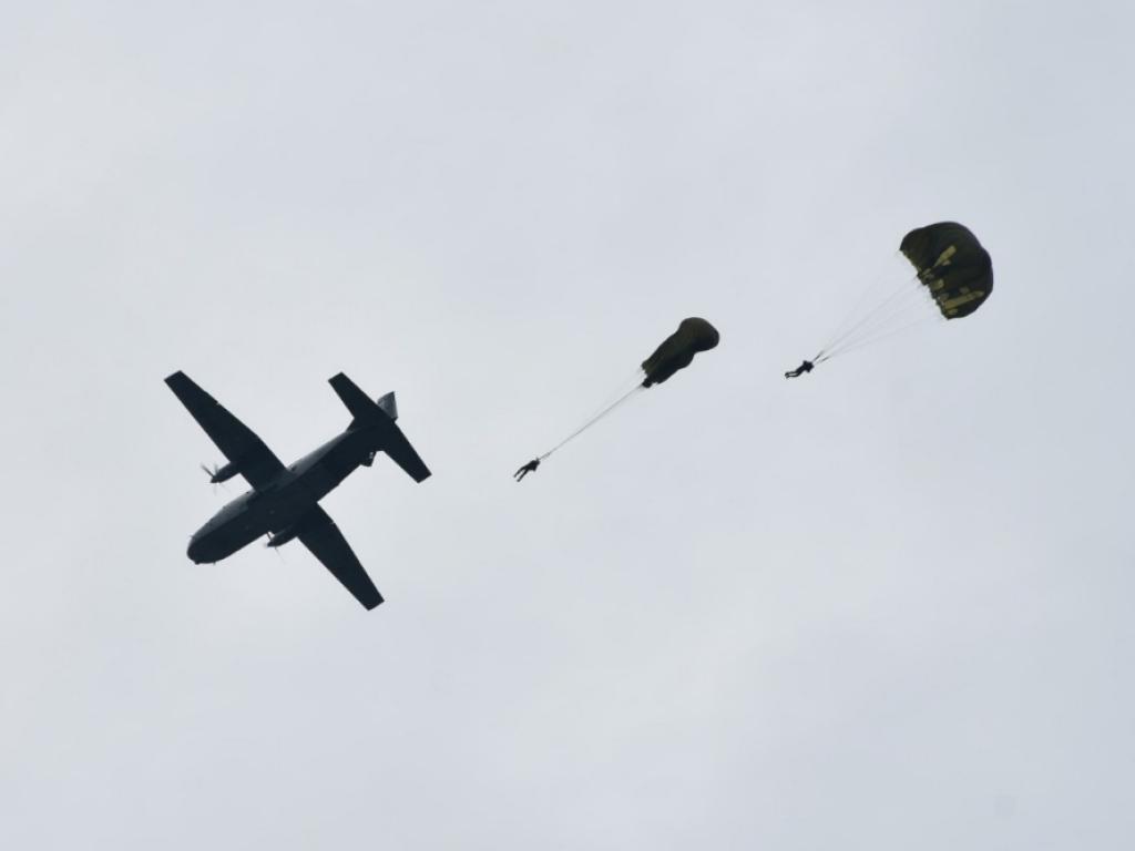 Latihan yang berlangsung mulai 10 - 16 November 2025 ini, para Pasis Marinir melaksanakan praktek terjun statik dari Pesud NC-212 pada ketinggian 1300 hingga 1500 kaki.