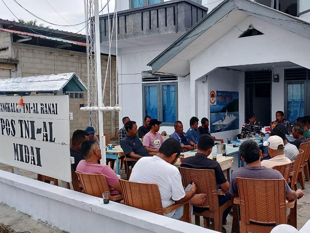 Menindaklanjuti arahan tersebut, Komandan Posal Midai, Kapten Laut (P) Agus Haryanto, bersama Babinpotmar Posal, mengundang insan maritim Pulau Midai untuk menerima sosialisasi keselamatan.