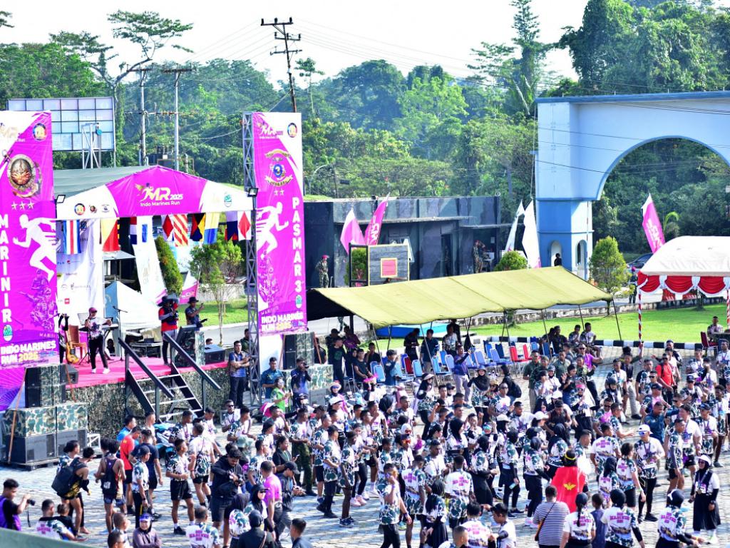 Semangat kebersamaan tanpa sekat menghangatkan lapangan apel Mako Pasmar 3, Kesatrian Marinir Agoes Soebekti, Kota Sorong, Papua Barat Daya, saat Indo Marines Run 2025 sukses digelar pada Minggu (30/11/2025).