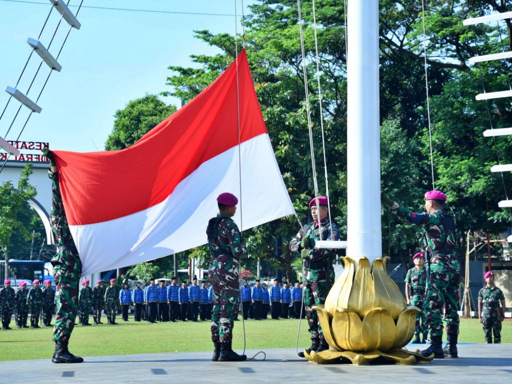 PERKOKOH NASIONALISME, KORPS MARINIR TNI AL GELAR UPACARA PENAIKAN BENDERA